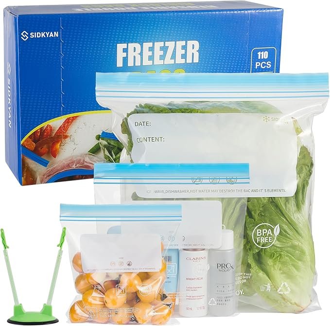 SIDKYAN 110 Pcs Freezer Bags, 3 Sizes Zip Lock Bags (Large, Medium, Small),